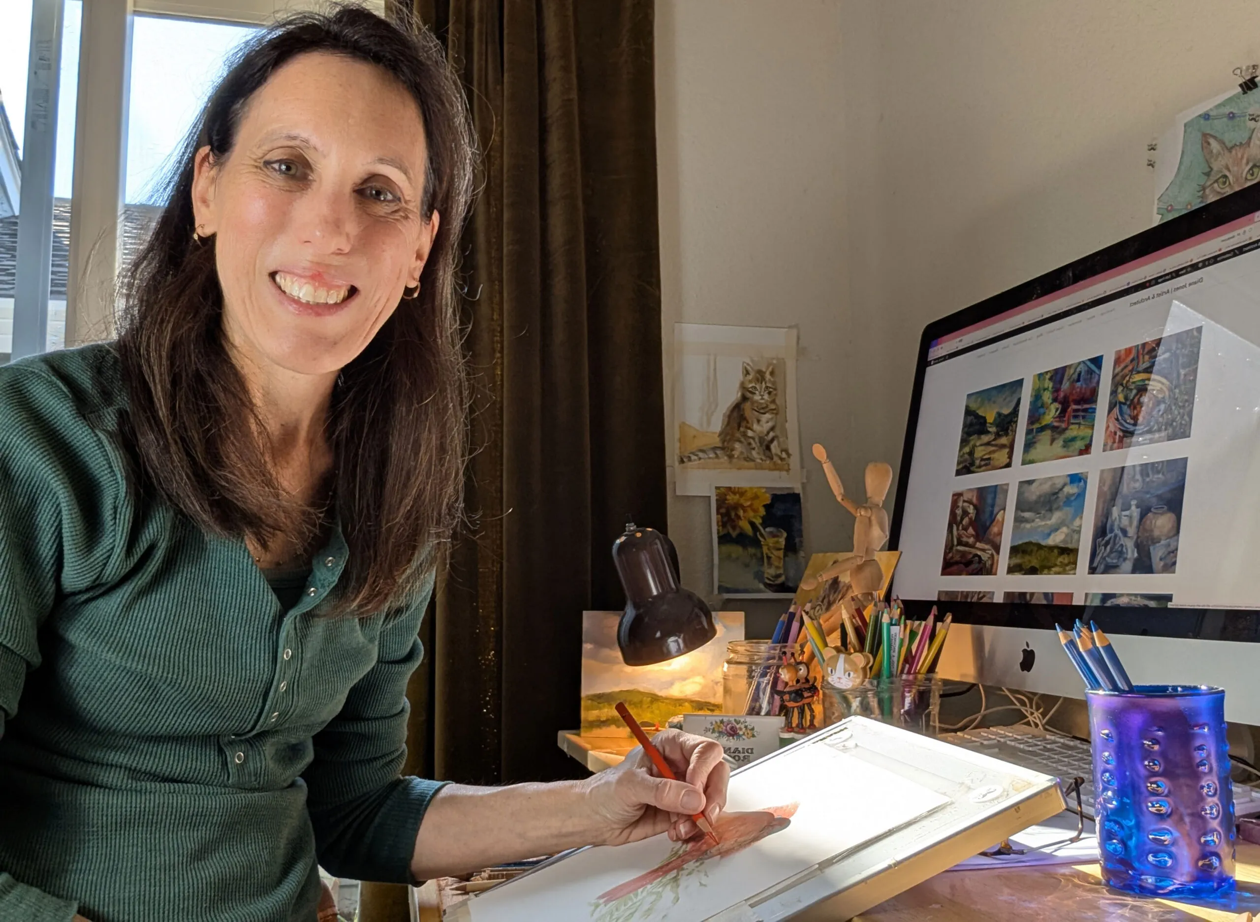 Growing up in the Santa Cruz Mountains the local scenery informed my organic style of drawing and general approach to art, color, and light. I enjoy the artistic process of making observational, gestural pencil sketches in my sketchbook, particularly of cats, birds, and plants. Sometimes the sketches evolve into color illustrations, animations, or paintings. My current painting studies explore transparency and luminosity. I look forward to meeting and learning from other artists at the gallery events and workshops.